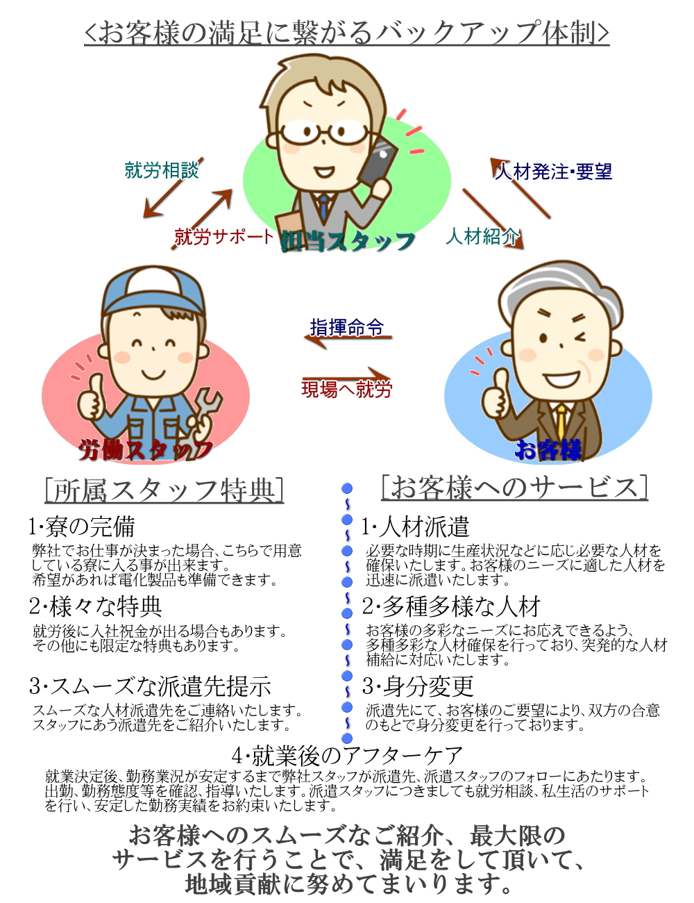 北関東最大の工業地帯に構える人材派遣会社として、お客様へのスムーズなご紹介、